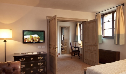 Стаите в Castel Monastero са в битов стил с интериор от камък и дърво. Всяка стая има плоскоекранен телевизор и минибар.